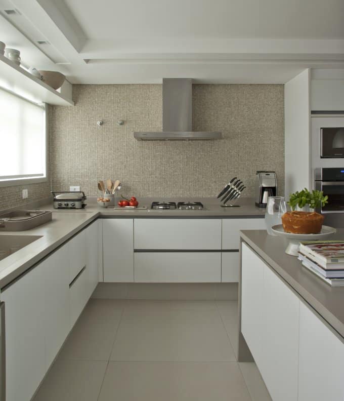 Dans cette chambre, les propriétaires tenaient à leur dressing, mais refusaient de renoncer au plaisir de regarder leurs séries préférées, sans quitter le confort du lit. L’idée trouvée par Ana Cristina Tavares et Claudia Krakowiak Bitran : intégrer la télévision directement dans la doublure en plâtre. Résultat : un système de levage sur mesure, logé dans le faux plafond, permet à l’écran de 42 pouces d’apparaître à la demande. Pratique et particulièrement adapté aux espaces restreints, à condition de planifier l’emplacement et les dimensions de la trappe (1,20 m de côté pour cet écran).
